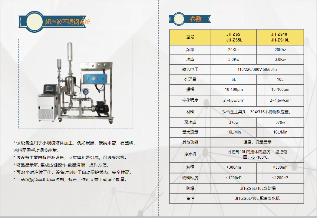 應(yīng)用:杭州精浩機械主要專注于定制超聲分散系統(tǒng)的設(shè)計和應(yīng)用,各類小試、中式設(shè)備。公司設(shè)有專門的開放實驗室,客戶可上門體驗和測試。