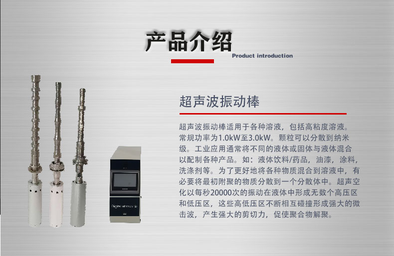超聲波分散設備適用于各種溶液,包括高粘度溶液。 常規(guī)功率為1.0KW至3.0kw。 顆粒可以分散到納米級。