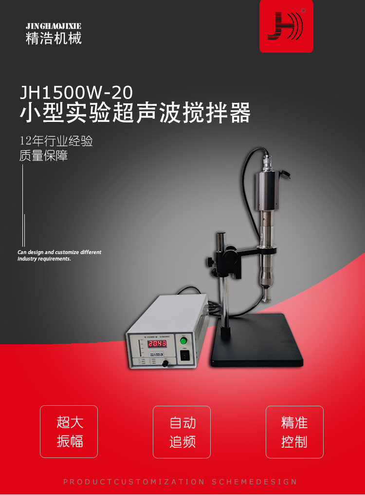 聲化學(xué)振動(dòng)棒小型實(shí)驗(yàn)超聲波攪拌器適用于各種溶液,包括高粘度溶液。常規(guī)功率為0.5kW至1.5kW。顆??梢苑稚⒌郊{米級(jí)。工業(yè)應(yīng)用通常將不同的液體或固體與液體混合以配制各種產(chǎn)品。如:液體飲料/藥品,油漆,涂料,洗滌劑等。為了更好地將各種物質(zhì)混合到溶液中,有必要將最初附聚的物質(zhì)分散到一個(gè)分散體中。超聲空化以每秒20000次的振動(dòng)在液體中形成無數(shù)個(gè)高壓區(qū)和低壓區(qū),這些高低壓區(qū)不斷相互碰撞形成強(qiáng)大的微擊波,產(chǎn)生強(qiáng)大的剪切力,促使聚合物解聚。