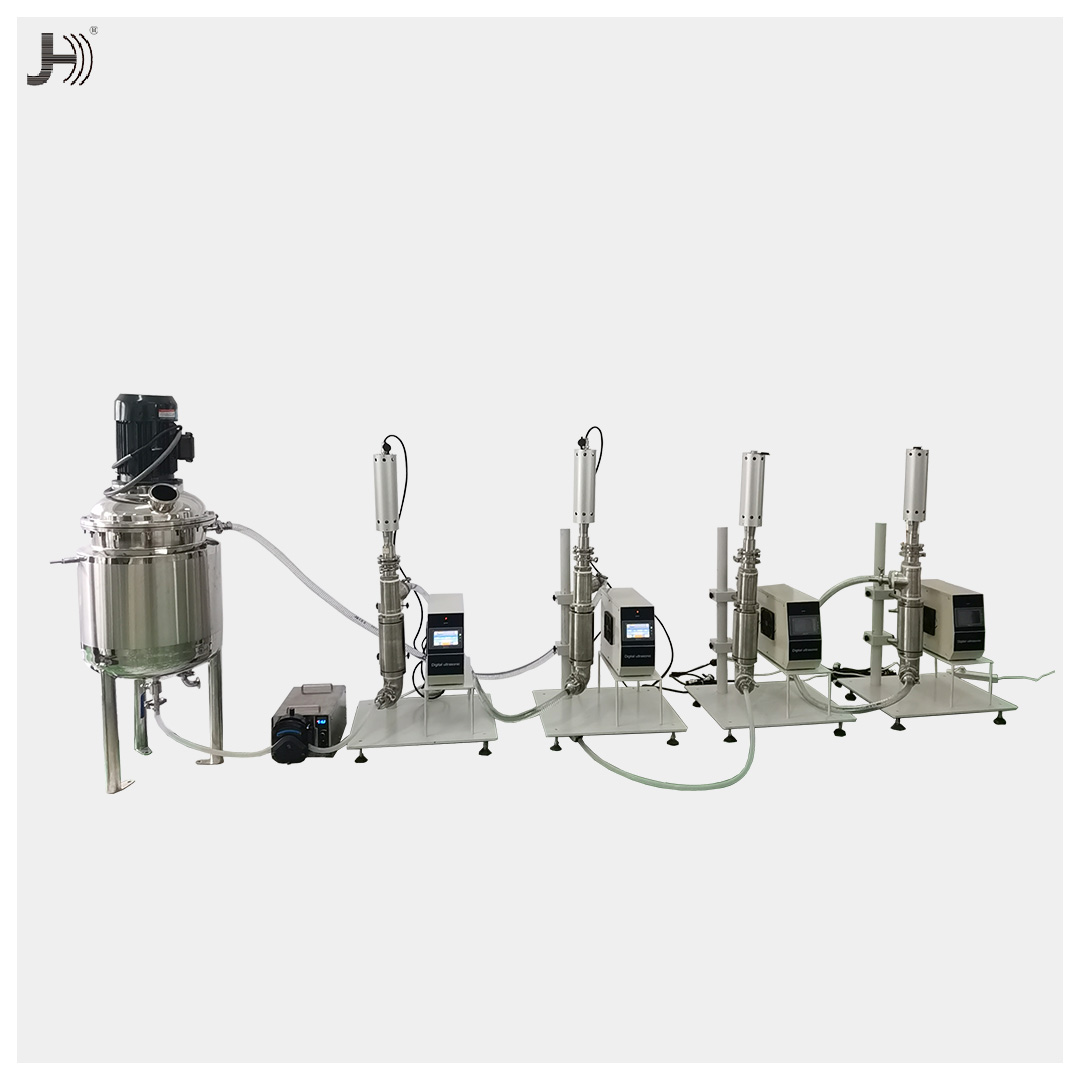 連續(xù)式管道型超聲攪拌設(shè)備適用于各種溶液,包括高粘度溶液。常規(guī)功率為1.0kW至3.0kW。顆??梢苑稚⒌郊{米級。工業(yè)應(yīng)用通常將不同的液體或固體與液體混合以配制各種產(chǎn)品。如:液體飲料/藥品,油漆,涂料,洗滌劑等。為了更好地將各種物質(zhì)混合到溶液中,有必要將最初附聚的物質(zhì)分散到一個分散體中。超聲空化以每秒20000次的振動在液體中形成無數(shù)個高壓區(qū)和低壓區(qū),這些高低壓區(qū)不斷相互碰撞形成強(qiáng)大的微擊波,產(chǎn)生強(qiáng)大的剪切力,促使聚合物解聚。