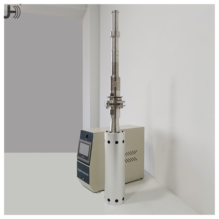 超聲波聲化學處理攪拌棒適用于各種溶液,包括高粘度溶液。常規(guī)功率為1.0kW至3.0kW。顆??梢苑稚⒌郊{米級。工業(yè)應用通常將不同的液體或固體與液體混合以配制各種產(chǎn)品。如:液體飲料/藥品,油漆,涂料,洗滌劑等。為了更好地將各種物質(zhì)混合到溶液中,有必要將最初附聚的物質(zhì)分散到一個分散體中。超聲空化以每秒20000次的振動在液體中形成無數(shù)個高壓區(qū)和低壓區(qū),這些高低壓區(qū)不斷相互碰撞形成強大的微擊波,產(chǎn)生強大的剪切力,促使聚合物解聚。