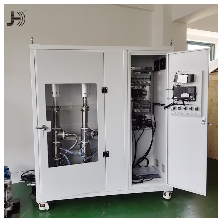 9000W循環(huán)式多級超聲波分散機適用于各種溶液,包括高粘度溶液。常規(guī)功率為1.0kW至3.0kW。顆??梢苑稚⒌郊{米級。工業(yè)應(yīng)用通常將不同的液體或固體與液體混合以配制各種產(chǎn)品。如:液體飲料/藥品,油漆,涂料,洗滌劑等。為了更好地將各種物質(zhì)混合到溶液中,有必要將最初附聚的物質(zhì)分散到一個分散體中。超聲空化以每秒20000次的振動在液體中形成無數(shù)個高壓區(qū)和低壓區(qū),這些高低壓區(qū)不斷相互碰撞形成強大的微擊波,產(chǎn)生強大的剪切力,促使聚合物解聚。