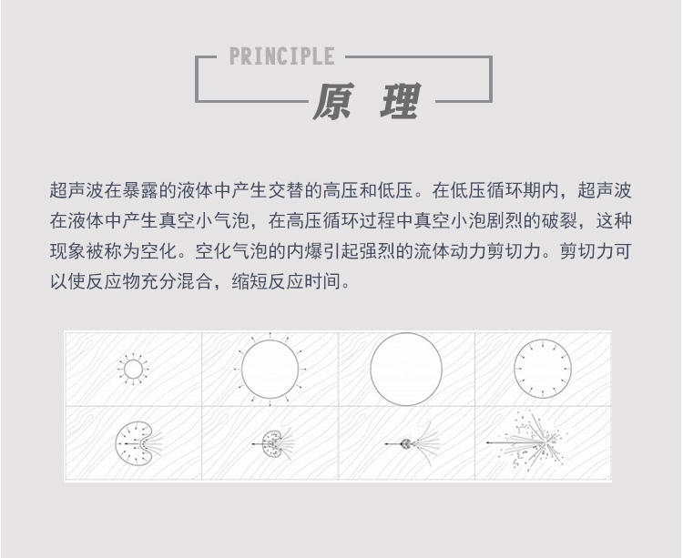 超聲乳化是指在超聲能量作用下,使兩種(或兩種以上)不相溶液體混合均勻形成分散物系,其中一種液體均勻分布在另一液體之中而形成乳狀液的工藝過程。