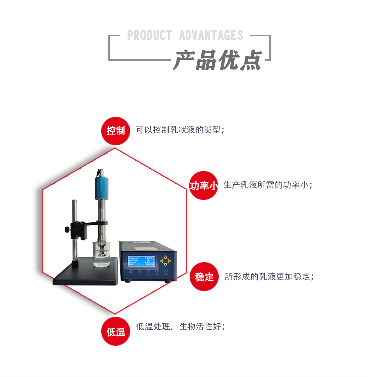 超聲乳化是指在超聲能量作用下,使兩種(或兩種以上)不相溶液體混合均勻形成分散物系,其中一種液體均勻分布在另一液體之中而形成乳狀液的工藝過程。