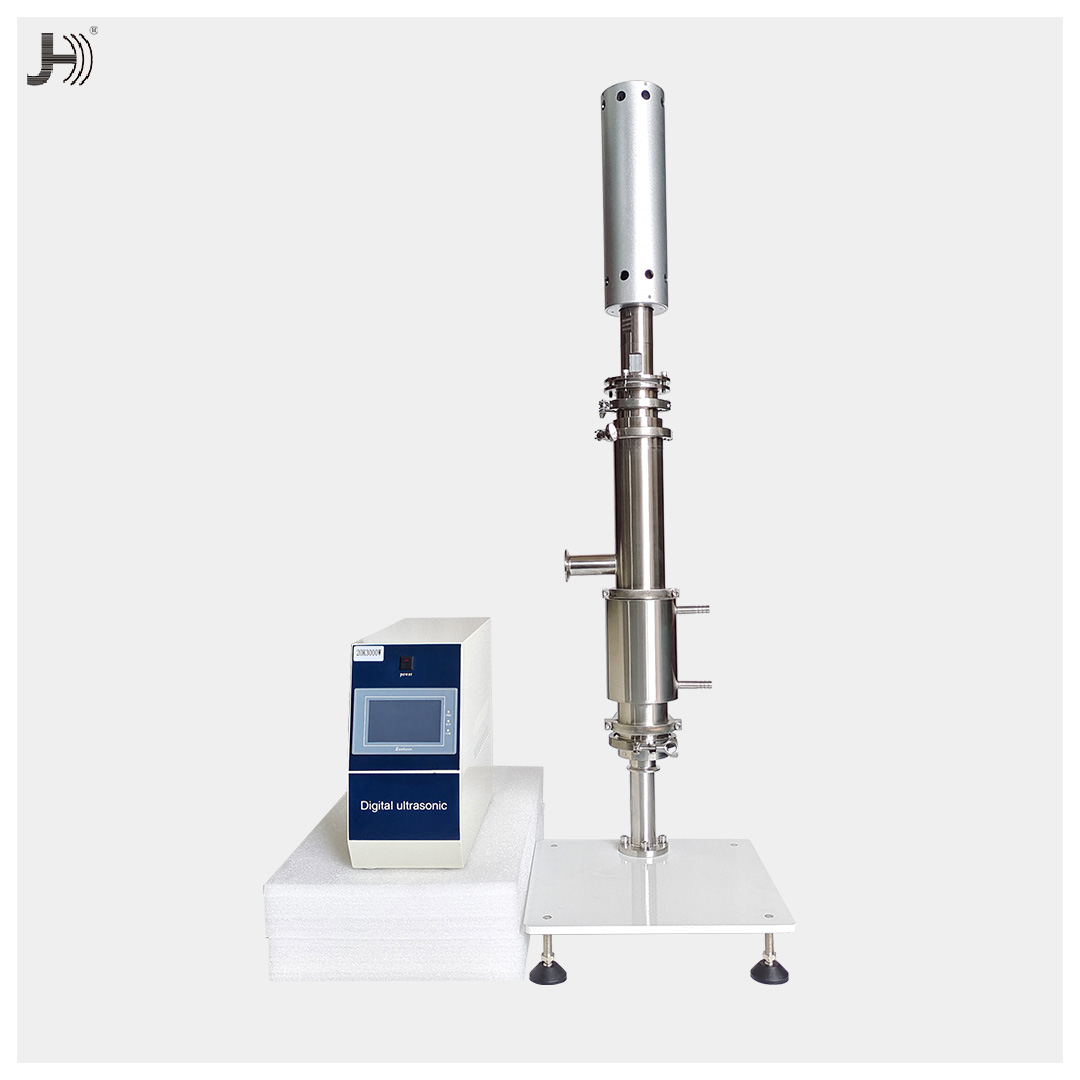 管道式超聲波工業(yè)級(jí)攪拌機(jī)適用于各種溶液,包括高粘度溶液。常規(guī)功率為1.0kW至3.0kW。顆??梢苑稚⒌郊{米級(jí)。工業(yè)應(yīng)用通常將不同的液體或固體與液體混合以配制各種產(chǎn)品。如:液體飲料/藥品,油漆,涂料,洗滌劑等。為了更好地將各種物質(zhì)混合到溶液中,有必要將最初附聚的物質(zhì)分散到一個(gè)分散體中。超聲空化以每秒20000次的振動(dòng)在液體中形成無數(shù)個(gè)高壓區(qū)和低壓區(qū),這些高低壓區(qū)不斷相互碰撞形成強(qiáng)大的微擊波,產(chǎn)生強(qiáng)大的剪切力,促使聚合物解聚。