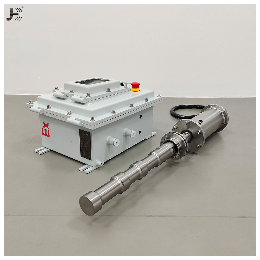 防爆型超聲波攪拌設(shè)備適用于各種溶液,包括高粘度溶液。常規(guī)功率為1.0kW至3.0kW。顆粒可以分散到納米級(jí)。工業(yè)應(yīng)用通常將不同的液體或固體與液體混合以配制各種產(chǎn)品。如:液體飲料/藥品,油漆,涂料,洗滌劑等。為了更好地將各種物質(zhì)混合到溶液中,有必要將最初附聚的物質(zhì)分散到一個(gè)分散體中。超聲空化以每秒20000次的振動(dòng)在液體中形成無(wú)數(shù)個(gè)高壓區(qū)和低壓區(qū),這些高低壓區(qū)不斷相互碰撞形成強(qiáng)大的微擊波,產(chǎn)生強(qiáng)大的剪切力,促使聚合物解聚。