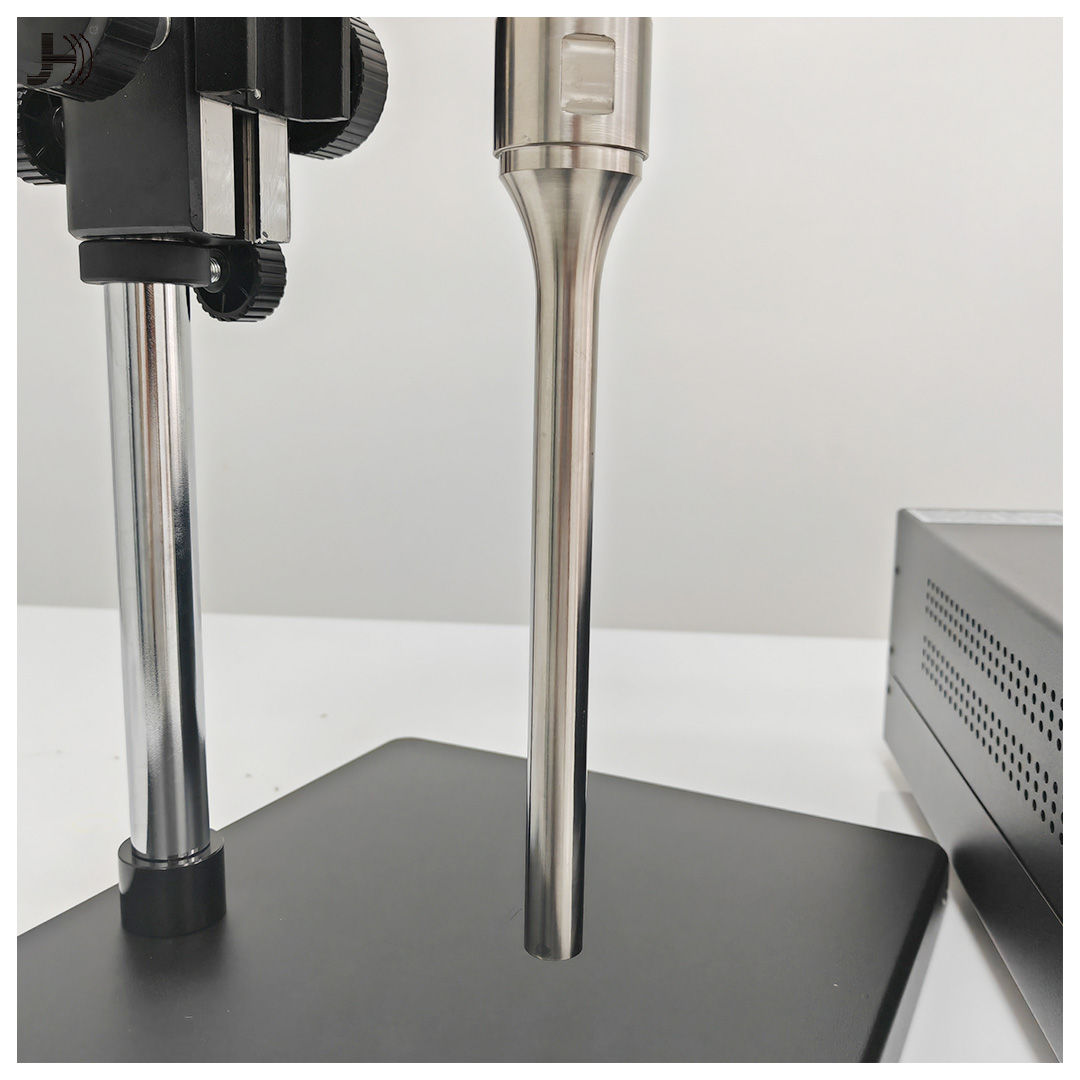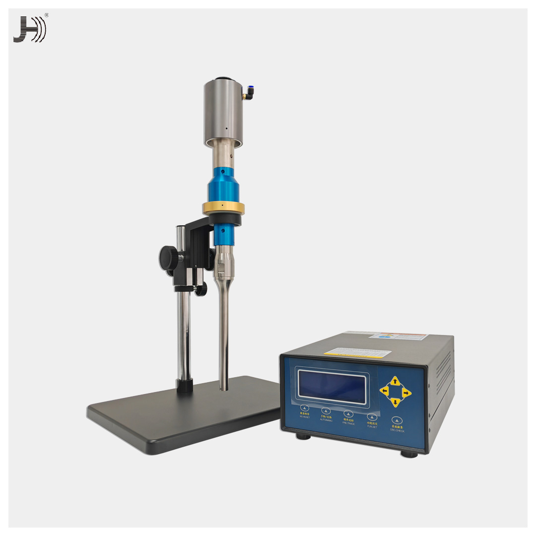 工具頭長(zhǎng)度262mm超聲攪拌器適用于各種溶液,包括高粘度溶液。常規(guī)功率為1.0kW至3.0kW。顆??梢苑稚⒌郊{米級(jí)。工業(yè)應(yīng)用通常將不同的液體或固體與液體混合以配制各種產(chǎn)品。如:液體飲料/藥品,油漆,涂料,洗滌劑等。為了更好地將各種物質(zhì)混合到溶液中,有必要將最初附聚的物質(zhì)分散到一個(gè)分散體中。超聲空化以每秒20000次的振動(dòng)在液體中形成無(wú)數(shù)個(gè)高壓區(qū)和低壓區(qū),這些高低壓區(qū)不斷相互碰撞形成強(qiáng)大的微擊波,產(chǎn)生強(qiáng)大的剪切力,促使聚合物解聚。
