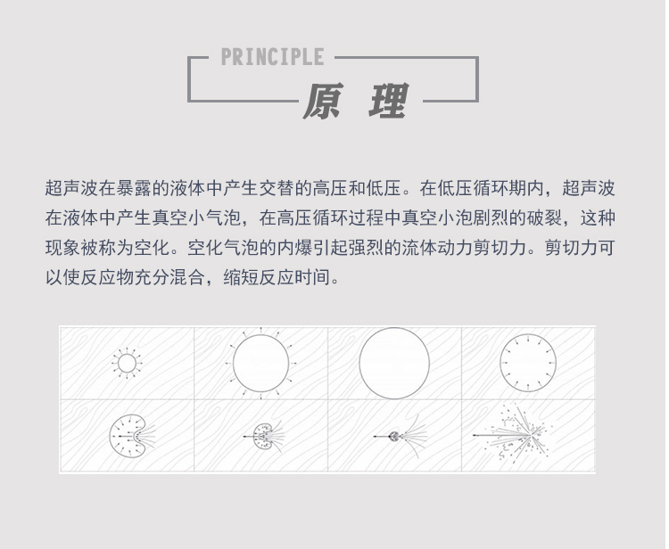 超聲波每秒振動20000次,增加介質中溶解的微氣泡,形成諧振腔,然后瞬間閉合,形成強大的擊,打破植物細胞壁,使有效成分流出。這是超聲空化的提取過程。