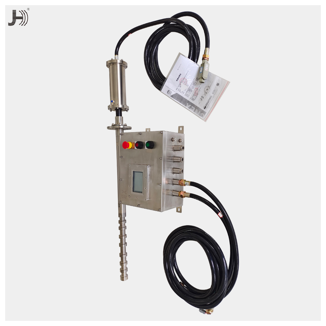 超聲防爆攪拌機適用于各種溶液,包括高粘度溶液。常規(guī)功率為1.0kW至3.0kW。顆??梢苑稚⒌郊{米級。工業(yè)應(yīng)用通常將不同的液體或固體與液體混合以配制各種產(chǎn)品。如:液體飲料/藥品,油漆,涂料,洗滌劑等。為了更好地將各種物質(zhì)混合到溶液中,有必要將最初附聚的物質(zhì)分散到一個分散體中。超聲空化以每秒20000次的振動在液體中形成無數(shù)個高壓區(qū)和低壓區(qū),這些高低壓區(qū)不斷相互碰撞形成強大的微擊波,產(chǎn)生強大的剪切力,促使聚合物解聚。
