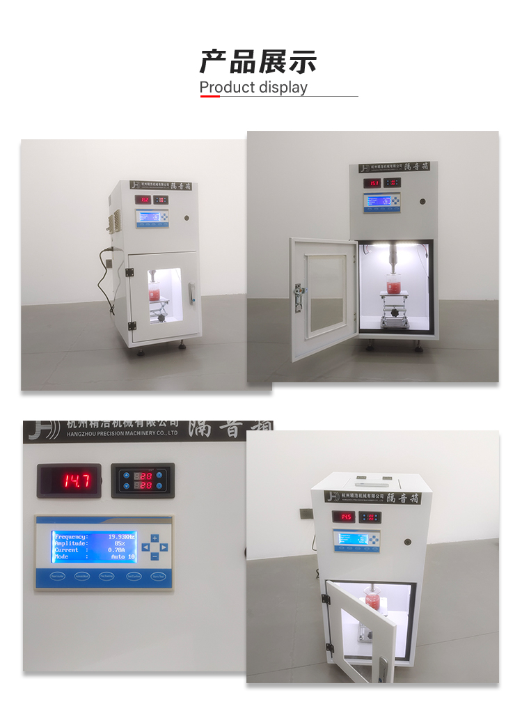 隔音箱設(shè)有活動(dòng)門(mén),工作時(shí),關(guān)閉活動(dòng)門(mén),然后再開(kāi)啟超聲波電源。工作結(jié)束后,打開(kāi)活動(dòng)門(mén)并取出試驗(yàn)樣本,完成一個(gè)超聲波實(shí)驗(yàn)過(guò)程。活動(dòng)門(mén)設(shè)有透明可視窗口,內(nèi)部配備LED燈光,便于觀察內(nèi)部分散情況。