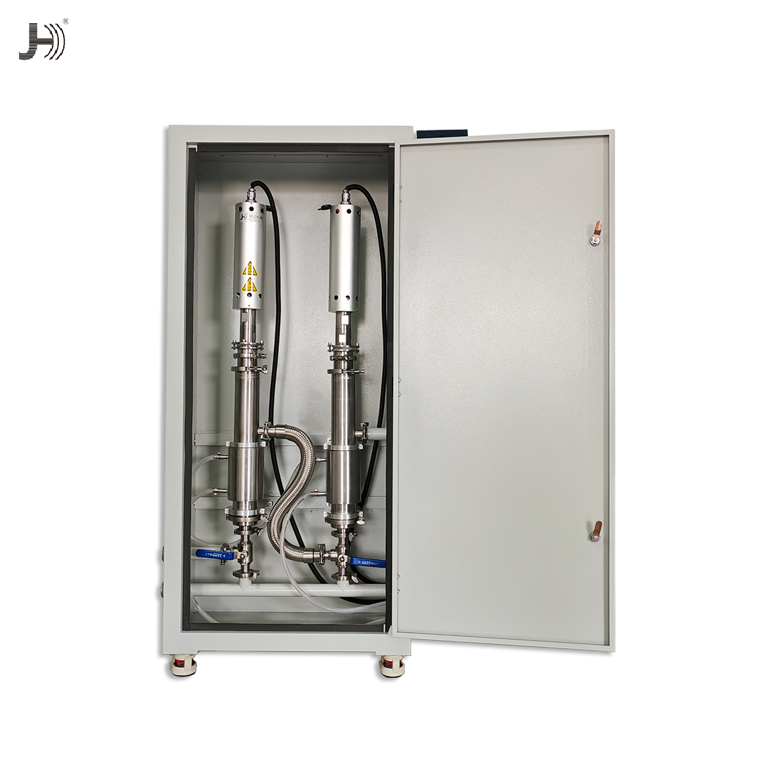 超聲固液混合攪拌設(shè)備適用于各種溶液,包括高粘度溶液。常規(guī)功率為1.0kW至3.0kW。顆??梢苑稚⒌郊{米級(jí)。工業(yè)應(yīng)用通常將不同的液體或固體與液體混合以配制各種產(chǎn)品。如:液體飲料/藥品,油漆,涂料,洗滌劑等。為了更好地將各種物質(zhì)混合到溶液中,有必要將最初附聚的物質(zhì)分散到一個(gè)分散體中。超聲空化以每秒20000次的振動(dòng)在液體中形成無數(shù)個(gè)高壓區(qū)和低壓區(qū),這些高低壓區(qū)不斷相互碰撞形成強(qiáng)大的微擊波,產(chǎn)生強(qiáng)大的剪切力,促使聚合物解聚。