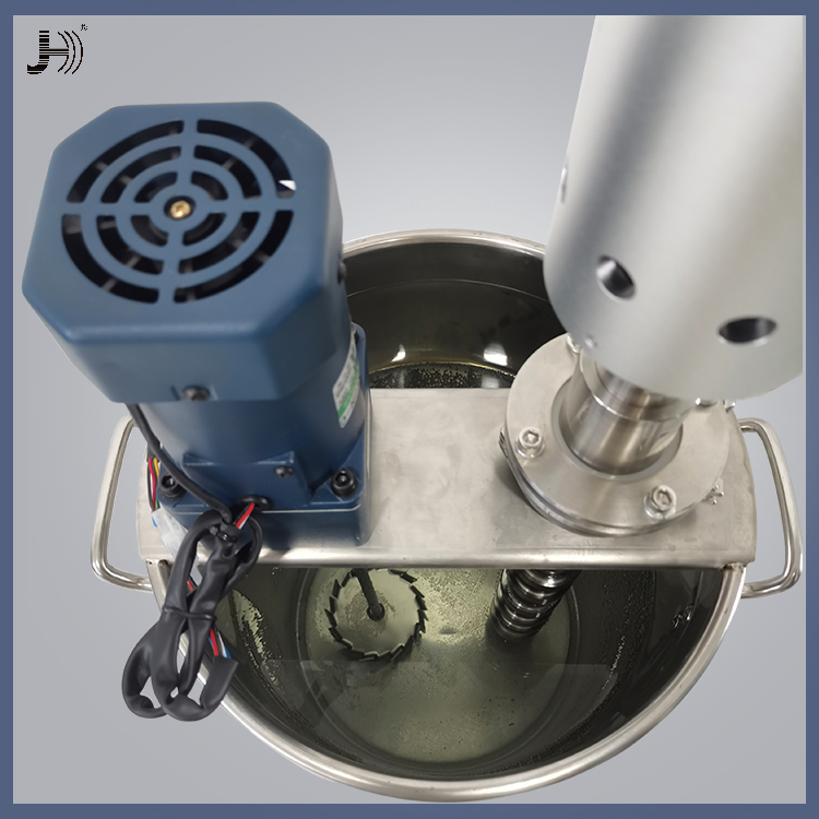 實驗室用超聲波攪拌機適用于各種溶液,包括高粘度溶液。常規(guī)功率為1.0kW至3.0kW。顆??梢苑稚⒌郊{米級。工業(yè)應(yīng)用通常將不同的液體或固體與液體混合以配制各種產(chǎn)品。如:液體飲料/藥品,油漆,涂料,洗滌劑等。為了更好地將各種物質(zhì)混合到溶液中,有必要將最初附聚的物質(zhì)分散到一個分散體中。超聲空化以每秒20000次的振動在液體中形成無數(shù)個高壓區(qū)和低壓區(qū),這些高低壓區(qū)不斷相互碰撞形成強大的微擊波,產(chǎn)生強大的剪切力,促使聚合物解聚。