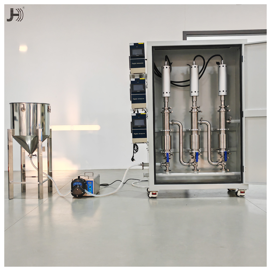 超聲波柜式均質(zhì)設(shè)備可以使液-液和固-液溶液更好地混合。 超聲波振動(dòng)會(huì)產(chǎn)生數(shù)百萬(wàn)個(gè)微小氣泡,這些氣泡立即形成并坍塌,形成強(qiáng)大的沖擊波,從而使細(xì)胞或顆粒破裂。